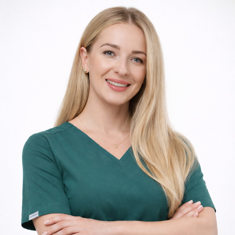 Kamila is passionate about her profession. She can create a harmonious duo with any specialist. She cooperates with all types of treatments and visits, showing great fondness for dental surgery. During the visit, she not only cares about good communication with the doctor, but also the patient’s comfort, which allows her to fulfill her professional life. Both at work and in privately, she is well organized, has a positive attitude to life and she’s spreading good energy. In her free time, she participates in various types of physical activities, bakes and cooks.